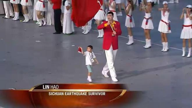 恰巧那一年正好赶上北京举办奥运会,所以林浩就被邀请到了奥运会的开幕仪式上,并跟着姚明一起担任举旗手!
